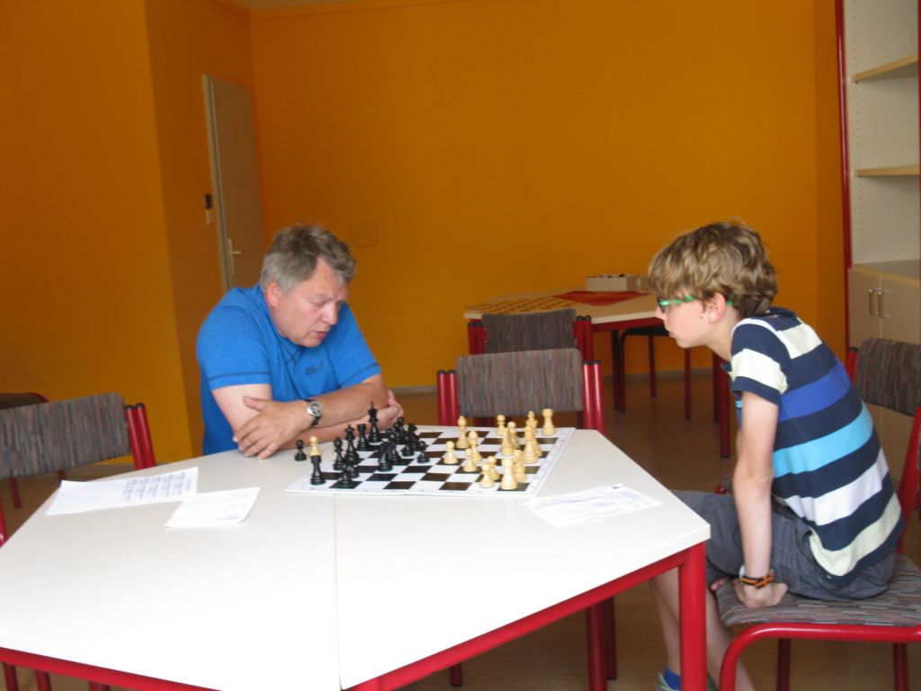 Am zweiten Tag standen zwei Runden auf dem Plan. Nachdem auch noch die 4. Runde klar siegreich gestaltet wurde kam es zu einem echten Finale gegen die TSG Apolda, die ebenso erfolgreich ihre vier Runden absolviert hatte. In einem hochspannendem Kampf unterlagen unsere Jungs denkbar knapp mit 1,5 :2,5 und wurden damit Thüringer Vizemeister. Aaron siegte am Spitzenbrett und Magnus spielte remis.
