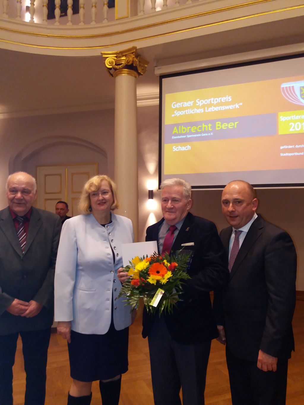 Am Freitag, 17. Februar 2017, erhielt Albrecht Beer zur Sportlerehrung die Auszeichnung des Stadtsportbundes für sein sportliches Lebenswerk im Schach.