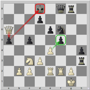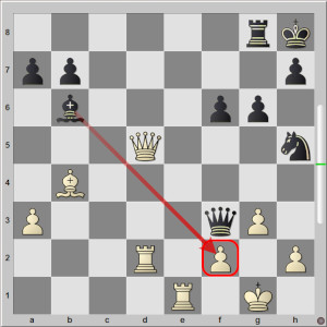 Nach 35. Dxa5+ Ke8 36. exf5? … geschah 36. … Dd6! und das Malheur war perfekt. Gegen den folgenden Angriff fand er dann keine Mittel.