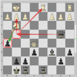 Mit dem Bauernopfer 20. … h5 gelang es Henrik am 3. Brett die Entscheidung herbeizuführen. Der Köder wurde geschluckt und sein Plan ging auf: